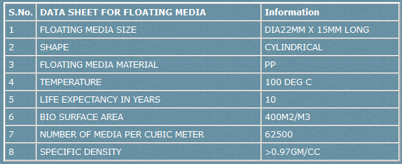 Microorganisms, which are attached to the floating media reduce the organic load. This is a fixed-film process where the floating media become carriers that build a floating bed in the water (The Bio Film) and stabilize WWTP.
