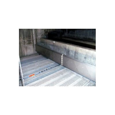 Floating scum baffle for solid retention of floating matters at stormwater overflows and CSO outlets. The vertical or radial floating baffles are suitable for strongly fluctuating water levels or high overflow levels as if moves with the water level up and down. The baffle will be produced in solid stainless steel.
