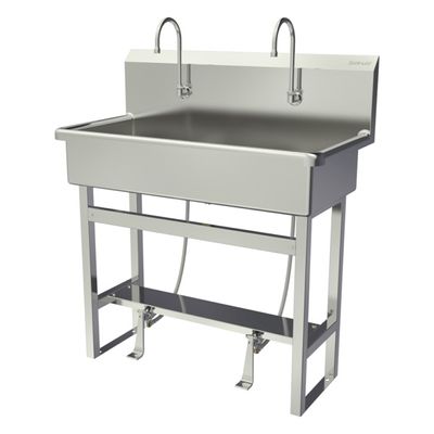 Certified NSF/ANSI Standard 2 Food Equipment and NSF/ANSI 372 low-lead; Constructed from welded #16 gauge type 304 stainless steel. The front, bottom and back are formed from a single sheet with a rolled rim on front and sides. Exposed surfaces have a blended uniform satin finish. Specially designed foot valves provide easy access to working parts without disconnecting mount or plumbing.