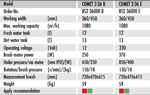COMET 2-36 B/E - Floor Scrubbers For small areas - fast and efficient.