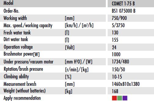 Floor Scrubbers COMET 1 -75 B For large areas - simply professional.