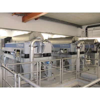 In the process of treating waste water, fine biological sludge is constantly produced during the decomposition process at a sewage treatment plant. For a stable decomposition process in the biological treatment phase, the sludge produced in the secondary sedimentation pond, also known as excess sludge, is removed and fed into the digestion tower. Flottweg's OSE decanters thicken the sludge before it enters the digestion tower. Sewage treatment plants benefit from an even feeding of the digestion tower and can thus optimally use the volume of the digestion tower. The Flottweg OSE decanter is specially designed for sludge thickening. ► Highest gas yield through constant feeding of the digestion tower
