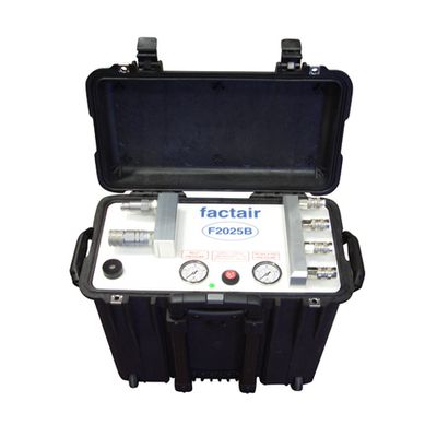 The F2025B is designed to allow users wearing airline supplied breathing-air masks to work at an extended distance from their breathing-air source. The unit allows a single larger diameter BA hose to be deployed from the supply source to the F2025B at the remote location. Users can then connect their individual supply hoses to the F2025B. Mounted within a PELI wheeled case, the F2025B incorporates a low pressure warning indicator and alarm which automatically detects whether there is a drop in the supply pressure and consequently a potential failure in the primary air supply. This then warns users to exit to a place of safety.