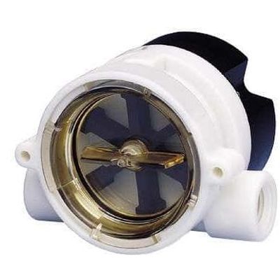 Flow indicators feature a paddle-wheel that spins at a rate proportional to the flow. Lens can be removed with a 1/4 turn for easy cleaning. Use with fluids that have a viscosity less than 34 centipoise (150 µm filter is r ecommended for protection).|Indicators feature a bright orange rotor that spins to provide visual verification.| Indicators/Sensors feature a Hall-effect sensor that produces a 4.5 to 24 VDC pulse output. Maximum current source output is 70 mA, and frequency output range is approximately 25 Hz at low flow to 225 Hz at high flow.|Indicators/Switches offer extra level of reliability and protection with a built-in switch. Each Single Pole Double Throw (SPDT) switch is rated for 1 amp, 24 VDC resistive. Repeatability is ±2% ; accuracy is ±5%. An LED lights when the set point is reached for easy field calibration.