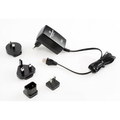 Power supply 100...240 Vac (50...60 Hz). Output 24V/0.625A (maximum 15W). Constant voltage, current limited. Continuously short circuit proof. Interchangeable plugs (Euro, UK, USA, Australian, IEC) for mains connection. RJ45 connector for instrument connection Cable length 2 m.