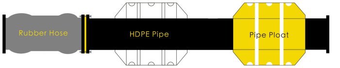 The Dredger Pipeline consists of Floating/Shore HDPE Pipe, PE Pipe Float and Suction/Discharge Hose with or without flanges. The HDPE dredging pipeline is widely used for quarries, mining, slurry, sand dredging. HDPE pipes and rubber hoses, to suit different needs and uses in dredging industry such as sea, ports, rivers, quarries, canals & mining.
