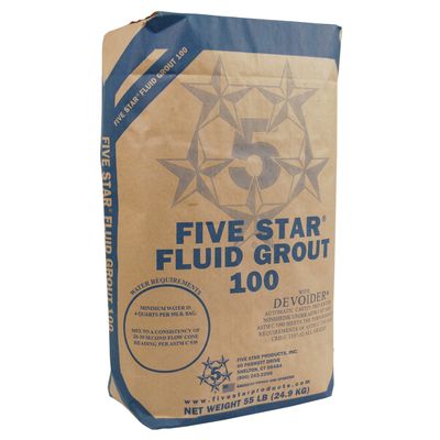 Five Star Fluid Grout 100 is the industry’s leading cement-based, nonmetallic, non-shrink fluid grout for supporting machinery and equipment. It is formulated with Air Release technology that combines high performance with the greatest reliability. When tested in accordance with ASTM C 827, Five Star® Fluid Grout 100 exhibits positive expansion. Five Star® Fluid Grout 100 meets the performance requirements of ASTM C 1107-02 Grades A, B and C, ASTM C 1107-07 and CRD-C 621-93 specifications for non-shrink grout over a wide temperature range, 40°F – 95°F (4°C – 35°C).