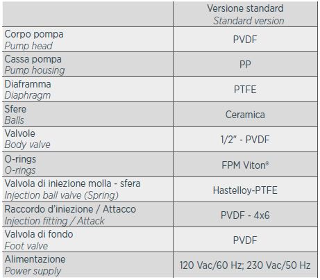 Digital multifunction solenoid driven dosing pump. Constant or proportional dosing mode. Reinforced PP housing, suitable for aggressive working environment. Inputs: level probe, inhibit, proximity sensor. Power supply range 100÷240Vac - 50/60Hz. Selectable language and units of measurement. 132x56 pixel graphic display. Simplified menu access via knob / encoder. IP65 protection degree. Wall mounting bracket supplied with installation kit.