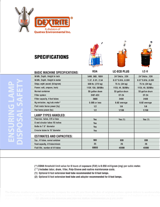 - The Dextrite crushers feature an activated carbon filter for mercury vapor recovery to keep vapors below 0.05 mg/m3 TLV (Threshold Limit Value) as per OSHA.