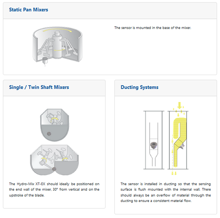 Brief details for mounting the Hydro-Mix XT-EX sensor in different types of mixer can be found below, and full details regarding both installation and calibration can be found in the User Guide.
