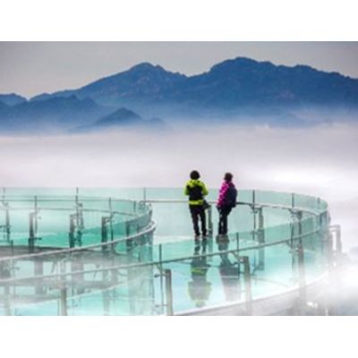Shilinxia flying saucer glass viewing platform is a maiden attempt for us to apply titanium in tourism. Titanium alloys are used in three main bodies of the platform, the main disk structure, corridor and the flying saucer structure.