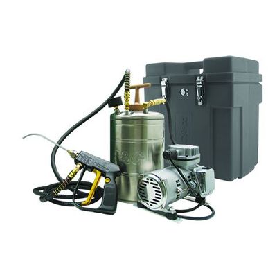 This complete foam delivery system is built around a small and quiet compressor, a 1 gallon stainless steel tank with a pressure gauge, a 7 ft. hose, a rugged valve with a curved application tip. The entire system fits into a B&G Carry Case for no spills and portability.
