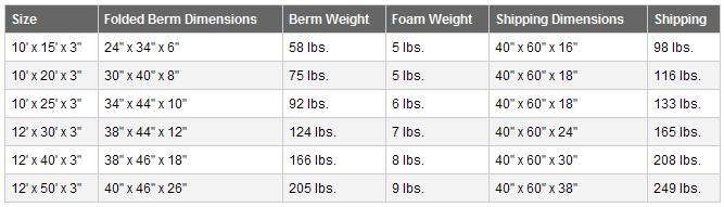 Contain minor drips and small capacity tanks with Husky Low Profile Foam Berms!. Husky foam wall berms are designed for long life and less maintenance. They are very simple to use and set up is minimal. There are cutouts on the bottom side of the berm in the corners and every 5 feet around the perimeter to accept the foam inserts. Foam inserts are 3` diameter by 5 feet long and are manually slid into the cutout pockets. Once inserted your berm is ready for use. There separate storage bags for the berm and foam inserts.