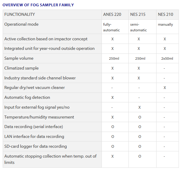 All types of Eigenbrodt fog sampler feature the same principle of collection: Fog water is collected with a sampler operating on the impactor principle (see figure). The air is sucked at a rate of rd. 125 m³/h through a twin nozzle behind. Droplets are been excellerated. They slash onto a specially designed deposition body, where the water is captured and flows down into a collection body.