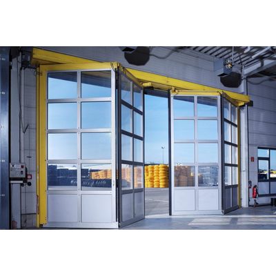 The EFA-SFT® is made of aluminium and steel, a combination for the highest quality standard. The supporting parts of the EFA-SFT® are made from galvanised steel sheet as standard. The door leaf is made of anodised, corrosion-free aluminium and is fitted with single pane acrylic glass, which lets lots of daylight into the building. Optionally, double glazed insulating glass guarantees you excellent thermal insulation with high-speed fold doors.