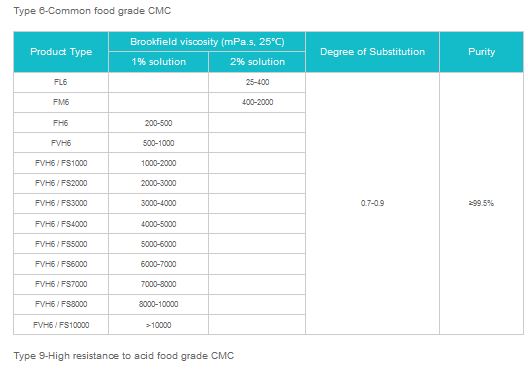 We classified food grade CMC into two types, type 6 and type 9. Type 6 is a common CMC (degree of substitution 0.75-0.9), and type 9 (degree of substitution more than 0.9) is acid-resistant with much better stability. The purity of our food grade carboxymethyl cellulose is much higher more than 99.5%, meeting GB1886.232-2016, E 466 and FCC IV standard. This is very important to guarantee food safety. We can produce food grade CMC as required specifications from ultra-low to very high viscosity.