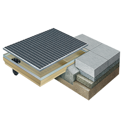 - For foot stripping boxes made of polymer concrete including galvanized steel frame