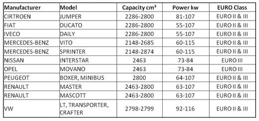 We are specialized in commercial vehicle diesel engines, thus we can offer an attractive retrofit option for vehicles keyed with the following key numbers: