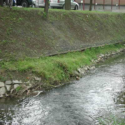 Reinforcing slopes and embankments with a reliable system for protection against erosion has always been a central talking point in road construction and landscaping. The fundamental requirements for use in this area are optimally fulfilled by ECOGRID®. When installed, an ECOGRID® surface permanently holds back the forces of erosion with its self-stabilising safety locking system and over 200 expansion joints per square meter. That’s why the ECOGRID®, which is certified by the German TÜV (Technical Supervisory Association) as being environmentally neutral in accordance with DIN 38412, is perfectly compatible with nature, despite its extreme durability.