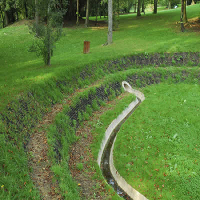 After preparing the slopes surface, the ECOGRID® sections can be installed and, if required, fixed with ground pins (only necessary on extremely steep slopes). The grids can then be filled with earth and the suitable seeds sown. After a few weeks the grids are substantially turfed and fit in with their surroundings by blending into the natural scenery. ECOGRID® offers immediate and permanent protection against erosion, which will continue to be strengthened by the formation of root networks beneath the large vegetation surface. For those who cannot wait that long for the green vegetation, there is always the quick version: the pre-turfed ECOGRID® grass module “ECOGREEN® â€, which offers you a fresh green surface within just a few hours. This is available in a variety of cultivation forms, depending on your requirements.