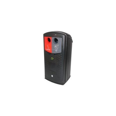 Suitable for use both internally and externally. Single unit, collecting 2 separate waste streams. Supplied with two 90 litre wheelie bins for 180 litre capacity. Patented honeycomb, double skin, structure provides exceptional strength. Dimpled surface to deter fly posters. Front opening design allows emptying without lifting. Slam shut door with 4 strong latch points. Heavy duty, automotive grade, tamper-proof lock. Choice of WRAP compliant colour coded apertures and graphics are standard. Area available for personalised graphic or company logo.