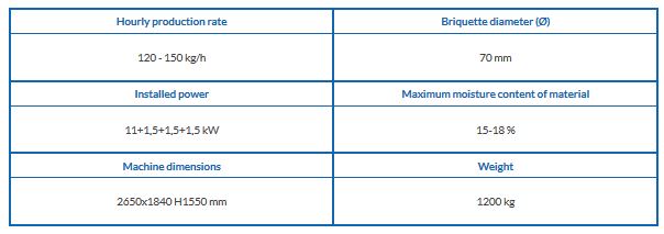 - mechanical press with compression head and extruder, mounted beside the mini silo;
