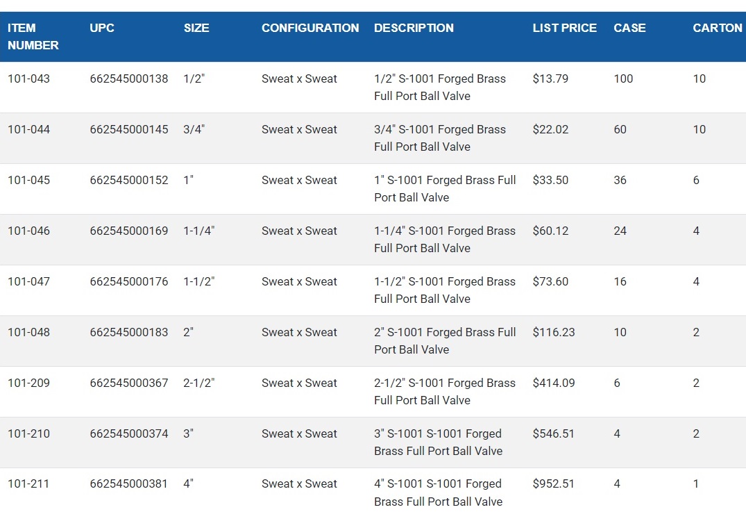 The S-1001 traditional alloy full port ball valve features a sweat end configuration and the Viton dual o-ring stem design complete with a tamper-evident locking seal. The Dyneon TFM PTFE seats reduce actuation torque, providing a smooth operating experience when paired with the self-cleaning chrome-plated ball. The S-1001NL also has a corrosion-resistant Dacromet-coated steel handle.