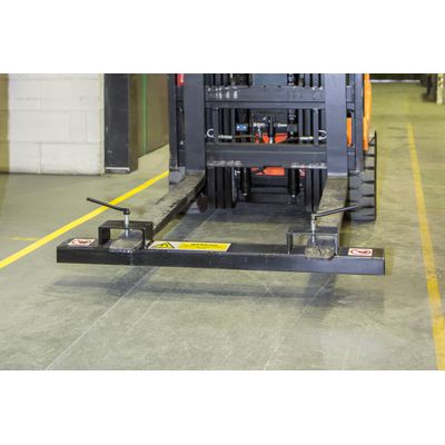 In operation, the Forklift Magnetic Sweeper is easily mounted onto the forks of universal forklift trucks using two 180mm wide pockets. Once mounted, the Sweeper is fixed into position with two safety brackets.