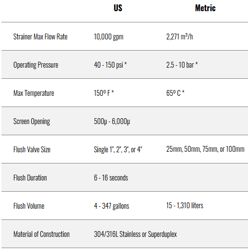 Coarse filters have a straight flange design which allows for direct installation into an existing pipeline. A Coarse Strainer industrial water filter is an in-line configuration of an automatic self-cleaning water filter. Coarse Strainer automatic filters have an inline flange design which allows for direct installation into an existing pipeline. This first-stage automatic water filter is designed to eliminate large debris from source water. A Coarse Strainer industrial water filter is often used in combination with other Forsta filter models to provide complete equipment protection.