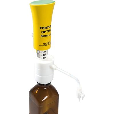 The OPTIFIX® SAFETY S Dispenser is offered in 6 sizes from 0.5 ml to 100 ml with a corresponding range of bottle top adaptors made of PTFE. This allows a wide range of volumes to be dispensed safely and accurately directly from storage bottles.