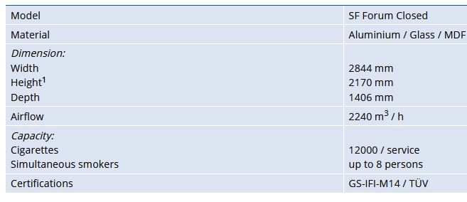 The SF-Line XL currently has two sizes, the SF Forum and the SF Square. The SF Forum have a capacity for approx. 35 regular smokers, whereas our largest cabin, SF Square, have a capacity for approx. 48 regular smokers.