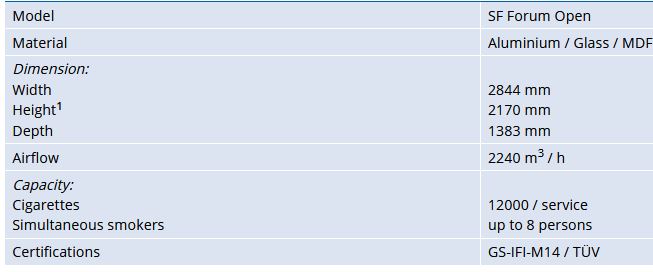 The SF-Line XL currently has two sizes, the SF Forum and the SF Square. The SF Forum have a capacity for approx. 35 regular smokers, whereas our largest cabin, SF Square, have a capacity for approx. 48 regular smokers.*