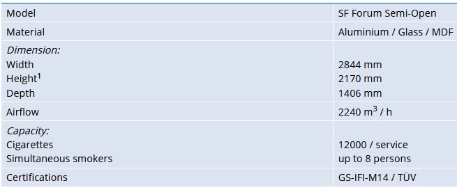 The SF-Line XL currently has two sizes, the SF Forum and the SF Square. The SF Forum have a capacity for approx. 35 regular smokers, whereas our largest cabin, SF Square, have a capacity for approx. 48 regular smokers.*