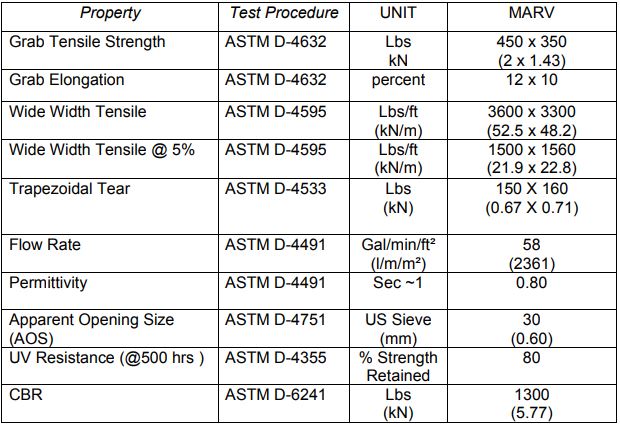 Foundation Geotextiles FG33 is manufactured from high-tenacity polypropylene yarns, which are woven into a dimensionally stable network in such a manner that the yarns retain their relative position to one another. FG33 resists ultraviolet deterioration and biological degradation and is inert to most naturally encountered soil chemicals, alkalis, and acids. NTPEP certified fabric.