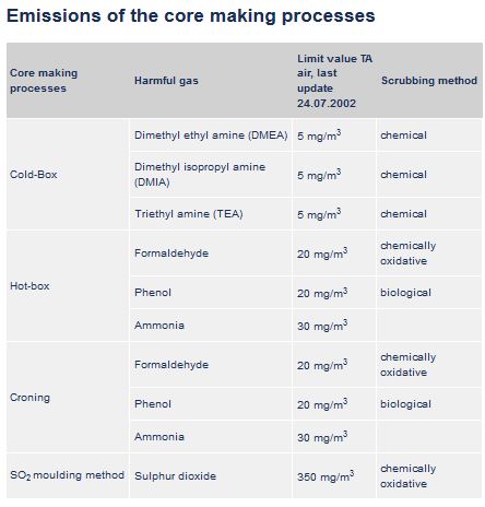 As regards the cold-box process, we offer scrubbers for the suction of the amine-contaminated exhaust air. The scrubbing liquid is either optimised for recycling and recovery of the amines, or treated in a neutralisation plant (which can be supplied by VSS) using sodium carbonate and/or soda lye in order to be introduced into the sewage system (provided that the official authorisation is available).