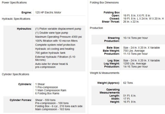 - Baling production: 11 to 13 tons per hour