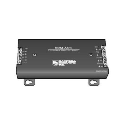 The CSDM-A04 provides four independent, continuous, analog outputs for proportional control or driving strip charts. Measured or processed values in the IMP-series of data loggers (IMP-855/865/900/950) are scaled to millivolts and transferred to the CSDM-A04 as digital values. The CSDM-A04 then performs a digital to analog conversion and outputs an analog voltage signal. The output voltage levels are maintained until updated by the data logger.