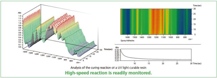 A rapid scan function allows rapid sample acquisitions of 20 spectra per second. This enables FTIR spectroscopy analysis of reactions occurring within a few seconds, and kinetic studies occurring in less than one second.