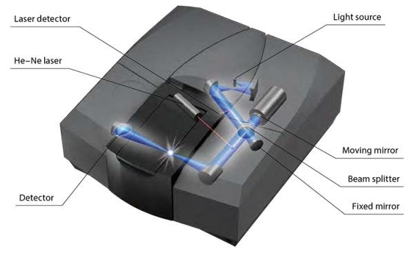 - Stable, airtight interferometer – incorporates a built-in automatic dehumidifier, protecting the FTIR spectrometer against moisture and other environmental influences