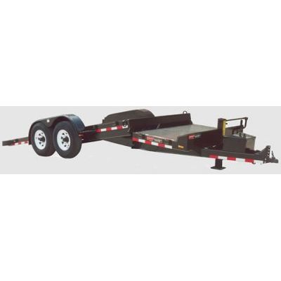 12,000# GVWR or 14,000# GVWR with 7K drop axles, 12 volt electric/hydraulic power up/power down system, 8 bolt hubs, heavy duty jack, 6” channel frame and tongue. Rear 16’ tilts, front 4’ stationary. 10º loading angle.