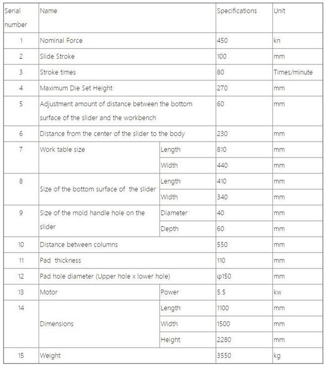 The safety performance of this press complies with all the requirements in GB 17120-1997 "Safety Technical Conditions for Forging Machinery" and JB3350-1993 "Safety Technical Requirements for Mechanical Press".