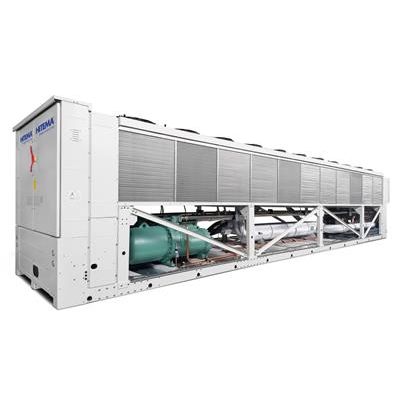 Standard Configuration:. Compressors:Screw. Condenser:Air-Cooled with integrated Free-cooling coil, with copper tubes and aluminium finned core. Evaporator:Shell & Tube. Expansion Valve: Electronic. Fans: AC axial. Protection Rating: IP54. Refrigerant: R134a; R513A and R1234ze. Cooling Capacity Renge: 266kW ÷ 1731kW.