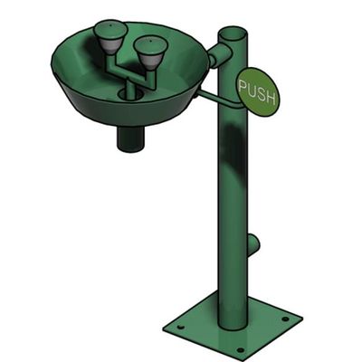 BR 305 085:ClassicLine freestanding safety eye shower with stainless steel bowl.