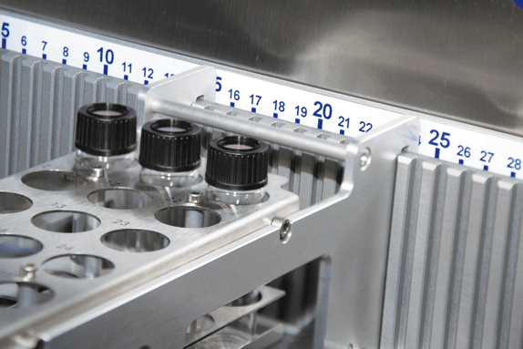 The required racks are simply hooked into the comb bar. The position is not predetermined. The user selects for each method the required rack types and saves them together with the method. The stored method can be selected at any time and can also be modified. Afterwards the user connects rack position and rack type in the software with a few mouse clicks. Positions, dimensions and container volumes are thus clearly identified.
