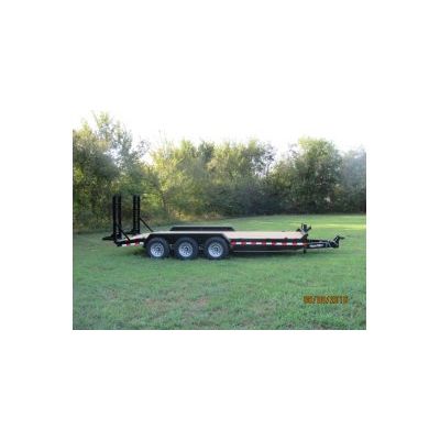 Axles: Tandem 7K, electric, EZ lube. Suspension: 6 leaf slipper springs. Tires: ST235-80R-16, load range E. Wheels: 8 bolt, silver modular. Fenders: 9 x 72 teardrop. Coupler: 2 5/16" adjustable coupler. Jack: 10K dropleg. Structural: 7" channel frame, 6" channel tongue, 3" channel crossmembers on 16" centers, *8" channel frame, Tie Downs: 14 stake pockets, 4 5/8" D-rings. Ramps: 3" channel, 5` x 16", stand-up w/knee support. Lights: Factory wiring harness, sealed beam lights, reflective tape, fender bar clearance lights, LED lights. Floor: 2" treated yellow pine. Paint Prep: Sand blast. Paint: Powder coated, Pin stripe. Safety: Breakaway kit.