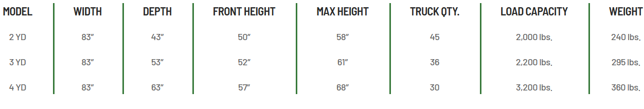 - Available in 2YD, 3YD, and 4YD sizes