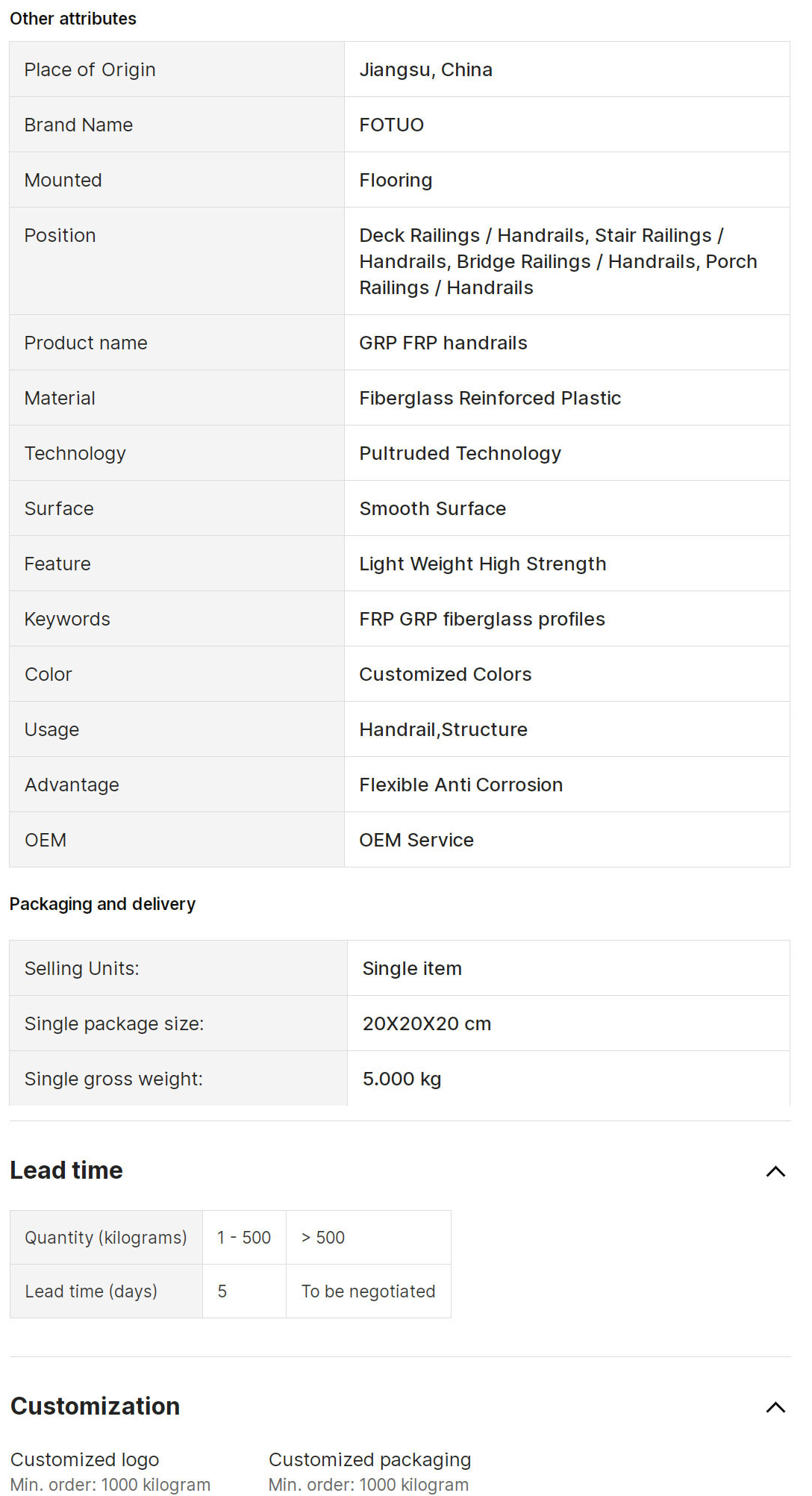 Fotuo - FRP/GRP All Round Tubes Handrail Guardrail