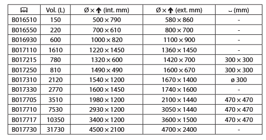 Including feet or frame, outlet pipe, bottom sump and overflow.