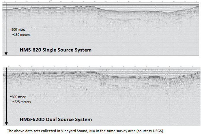 The HMS-620 ORD Bubble Gun systems use low-frequency acoustic signals to provide superior signal penetration vertically through coarse sand, gravel tills, and other difficult-to-penetrate sediments.