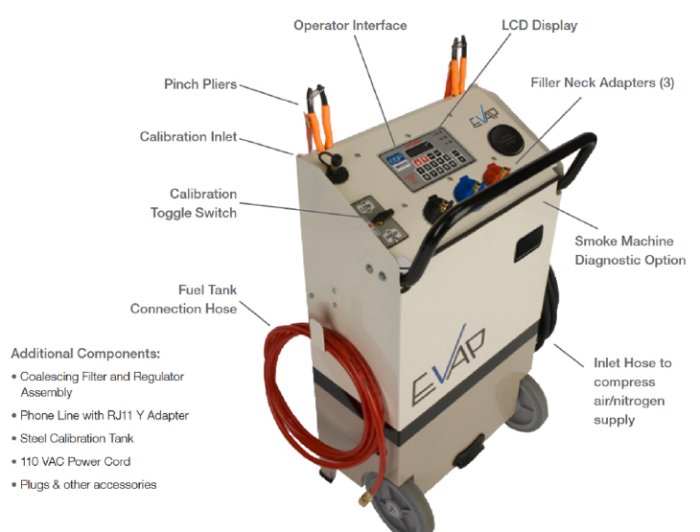 The ESP equipment is a self-contained, automated, all-in-one unit that`s easy to use. Fast-pass and fast-fail algorithms speed up test times and EVAP comes equipped with a manual mode that uses audio signaling to assist technicians in diagnosing leaks.